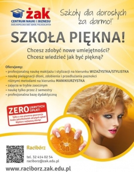 Wizażystka stylistka w ŻAK Racibórz! Uzyskaj specjalizację w 2 semestry! Duża liczba godzin zajęć praktycznych! Zaoczny system nauczania! Nie wymagamy matury! O przyjęciu decyduje kolejność zgłoszeń!