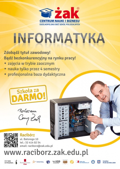 Przyjdź do ŻAKa i podejmij naukę ZA DARMO na kierunku technik informatyk! Nie wymagamy matury! Nauka trwa tylko 2 lata, zajęcia odbywają się w trybie zaocznym!